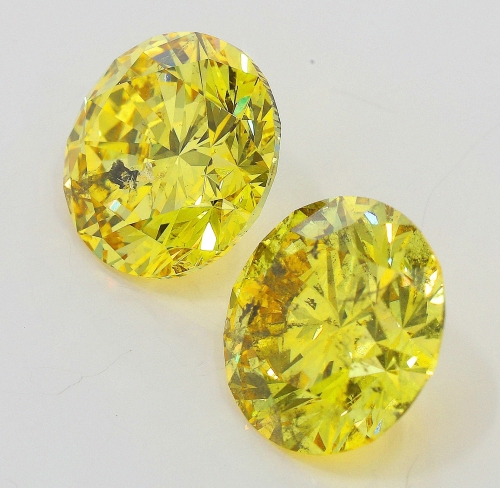 Introducing an exquisite pair of Fancy Vivid Yellow diamonds: a 2.02 carat Brilliant Round + a 2.09 carat Brilliant Round, both with GIA certificates. These stunning diamonds feature vibrant vivid yellow hues and exceptional brilliance, making them perfect for creating a truly unique and captivating piece.
